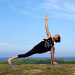 Exhale as you rotate finishing with your eyes looking and hand pointing towards the sky in a T position.